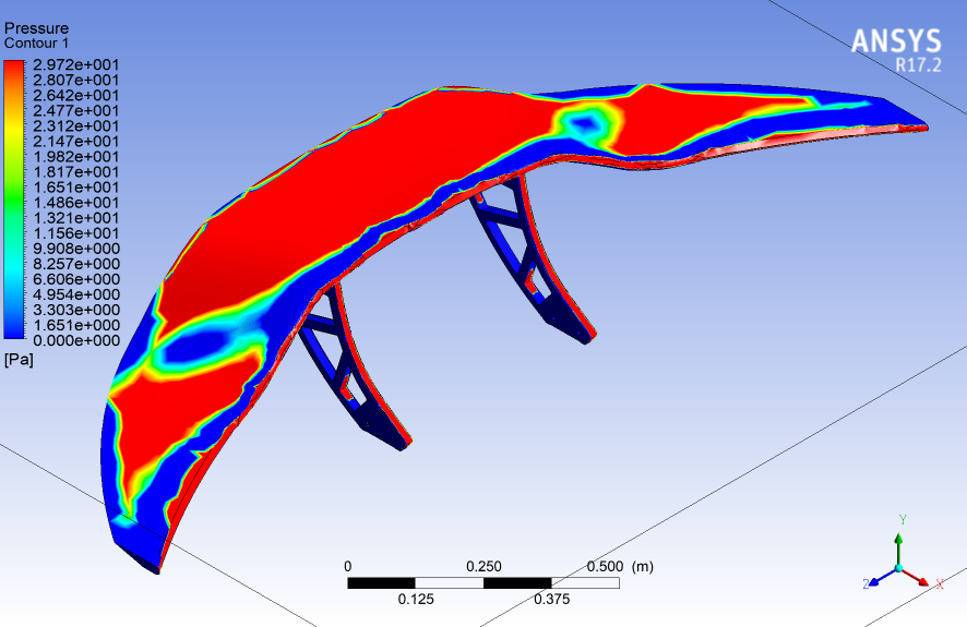 The Design – Pressure Contour on Rear Spoiler “Molto Veloce” Lamborghini Aventador | Ansys Fluent