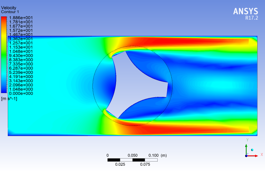 The flow input for this analysis is defined as the VELOCITY INLET for input velocity magnitude is 5 m/s. The walls of the Triple Plate are defined as Moving Wall for Wall Motion. The output flow type is PRESSURE OUTLET, and the gauge pressure is equal to 0.