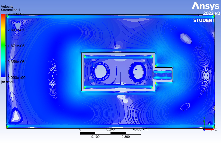 K-epsilon (2 equation) model has been used for fluid flow inside the design modeler and the simulation considers air phenomena. So, Case will be initialized with mixed pressure are solved.