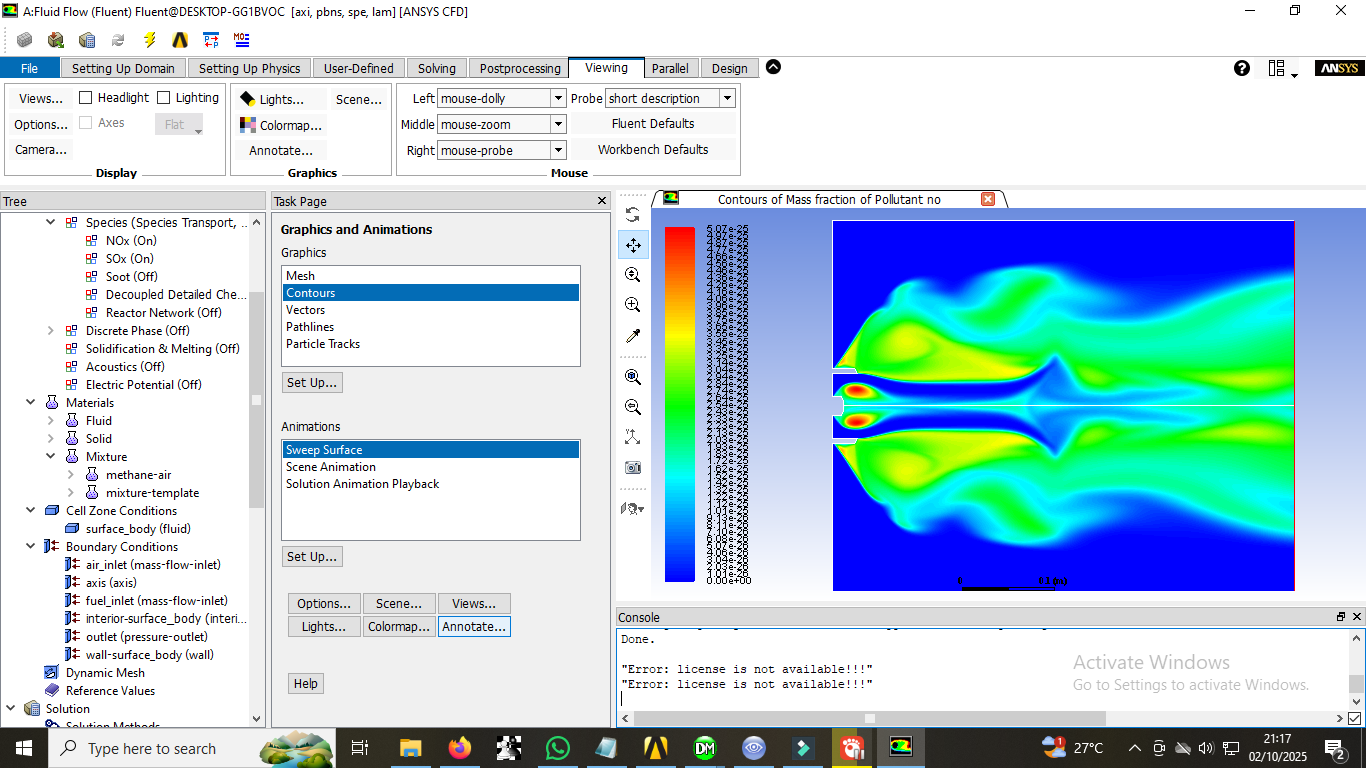 The results are presented as Mass Fraction of Pollutant NO as well as countours.