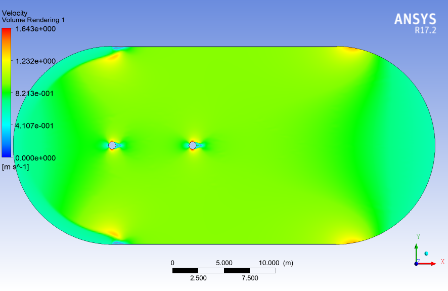 The flow of primary input design modeler geometry for this analysis is considered as velocity magnitude and is 0.6 (m/s). The turbulence of the design modeler is set with an intensity equal to 0.5 (%). The turbulence of the design modeler is set with a length scale equal to 0.04 (m).
