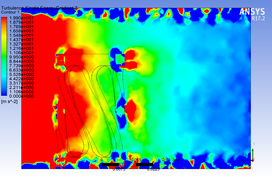 The results are presented as Turbulent Kinetic Energy.Gradient Z contours as well as streamlines.